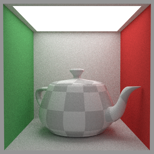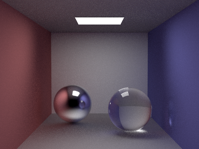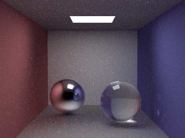 Next, I built an integrator called multiple importance sampling that combines next event estimation with material sampling to produce less noisy images.