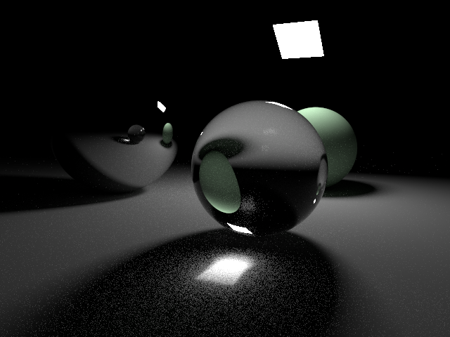 Lastly, I implemented a dielectric (glass-like) material, which reflects and refracts light depending on the angle of incidence and other factors.