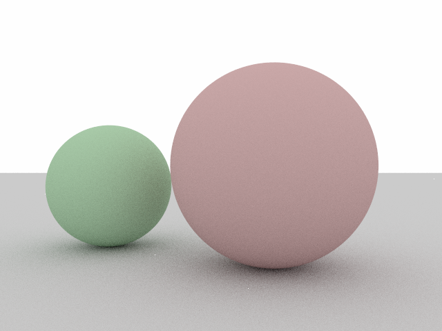 I first implemented a collision algorithm for spheres and an attenuation algorithm for lambertian (matte) materials.